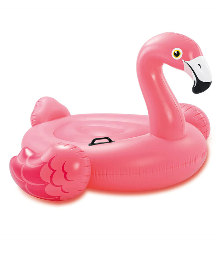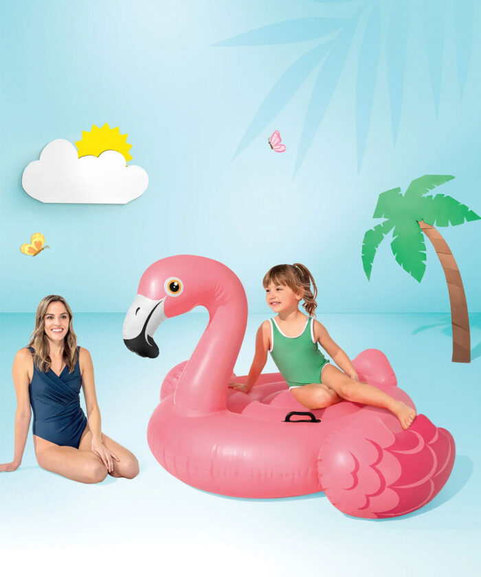 An inflatable, flamingo mattress is a new offer from the Intex brand for a holiday trip to the water. This Original mattress will surprise you not only with design, but with of workmanship. Its solid construction is due to two independent air chambers. That’s why the mattress keeps its stability, even with frequent use. Durable vinyl material with a thickness of 0.30 mm is a guarantee of resistance to damage and abrasion. Material: 0.30mm plastic material, double chamber structure, high strength hand handle; create extra fun with Intex flamingo ride on float and wade your way to the pool; kids will have so much fun with the flamingo design float; constructed with two heavy duty handles and two air chambers for added safety.; includes a repair patch for convenience. Perfect for ages 3 years and up. Intex flamingo swan floating swimming pool float ride-on.