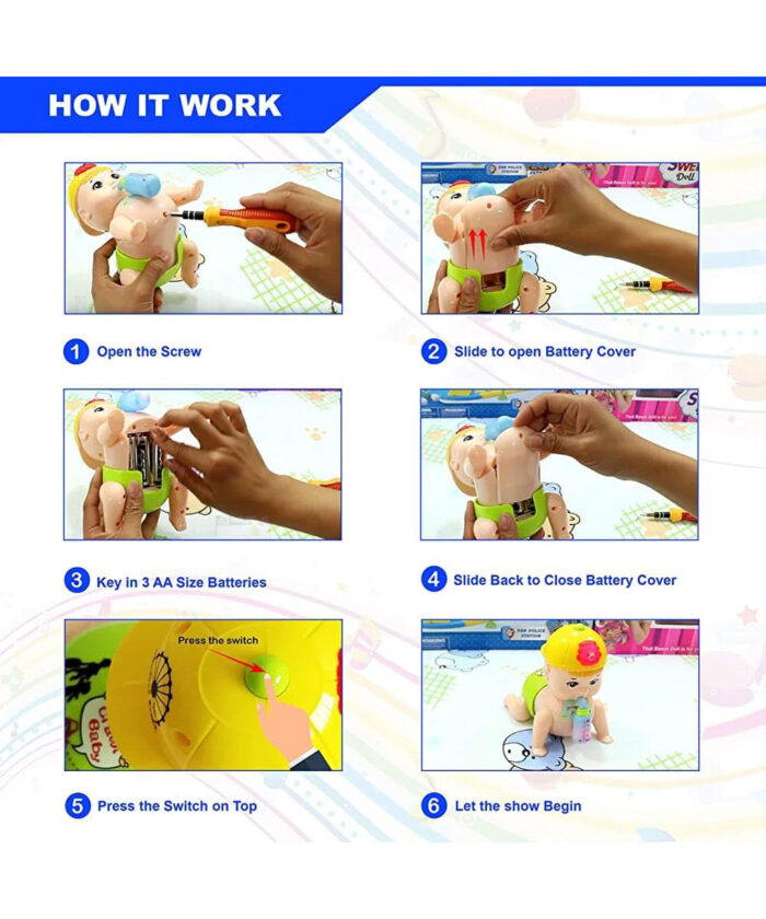 Make playtime extra adorable with the Crawling Baby toy – a fun and interactive companion designed to entertain, engage, and support early development. This delightful toy mimics real baby crawling, complete with gentle music, cheerful sounds, and colorful lights that capture your child’s attention.