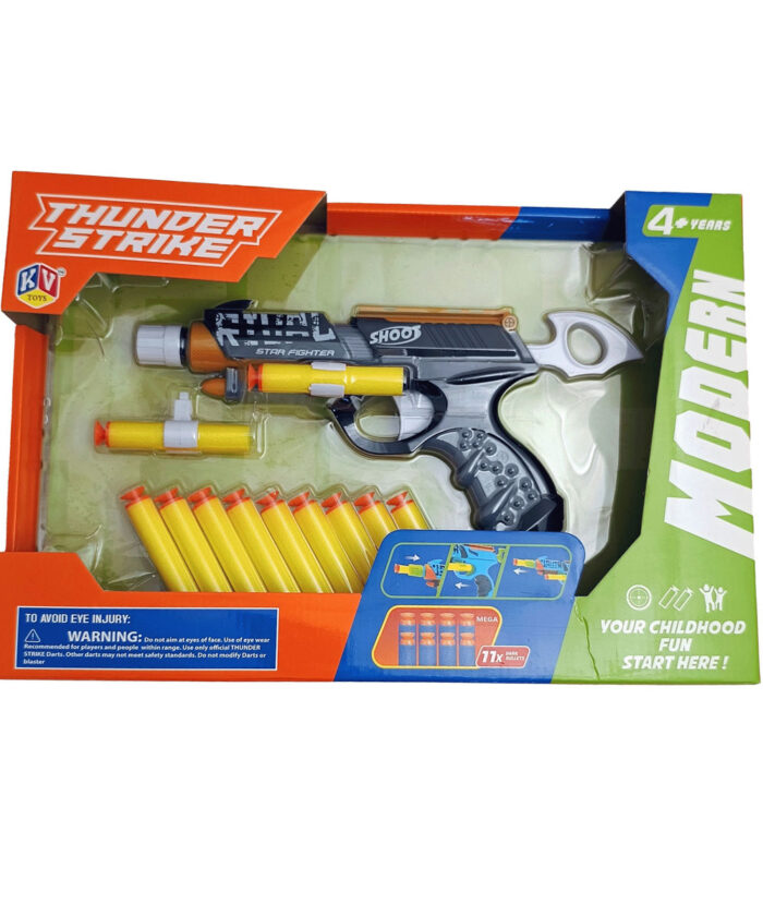 Thunder Strike Gun – Safe, soft dart-blasting fun for kids! Includes 6 foam darts. Perfect for action-packed play for ages 4 and up.